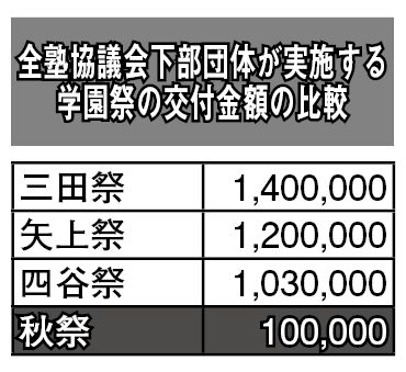 増額の要請に対して全塾協議会は、チケット代だけで70万円の赤字を出した昨年の様子から「ライブゲストと集客数が見合っていないのでは」と指摘。三田祭など他の祭りに比べて交付額が少ない現状を考慮した上で今後検討が続いていく。