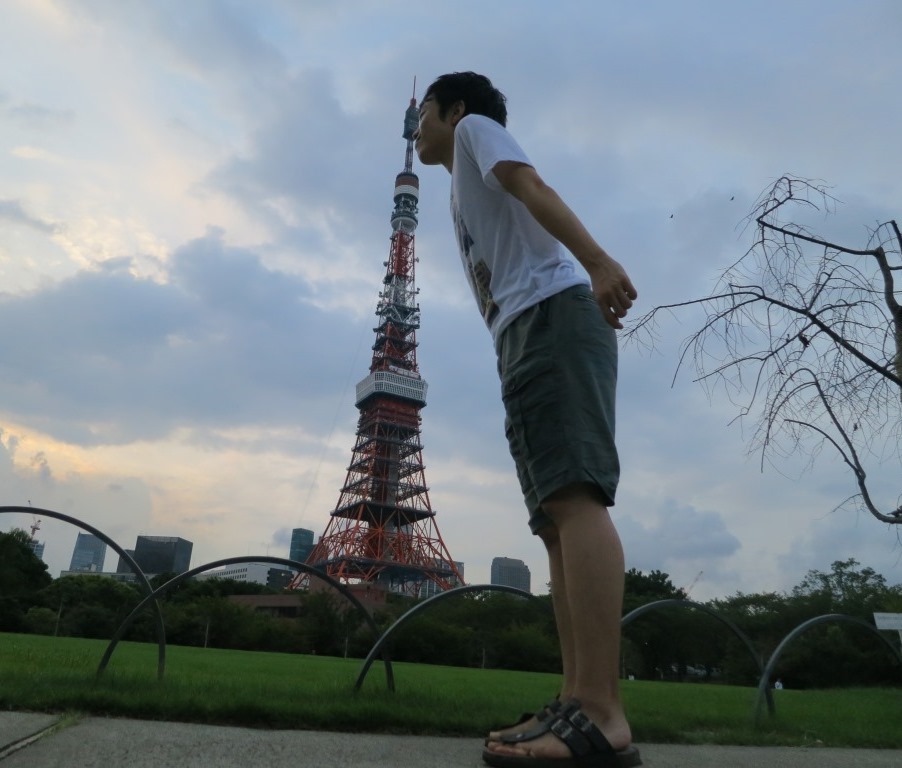 Yたちが向かったのは三田キャンパスからほど近い東京タワーがよく見える通りだ。「中身じゃなく物理的な意味ででっかくなりたいんだよね」と言い、都会のど真ん中でカメラを片手に秘密の活動を進める。通行人が時折怪訝そうな目でこちらを見るが、「き、奇行種じゃないから安心して」と震え声でYは返すのが精いっぱい。