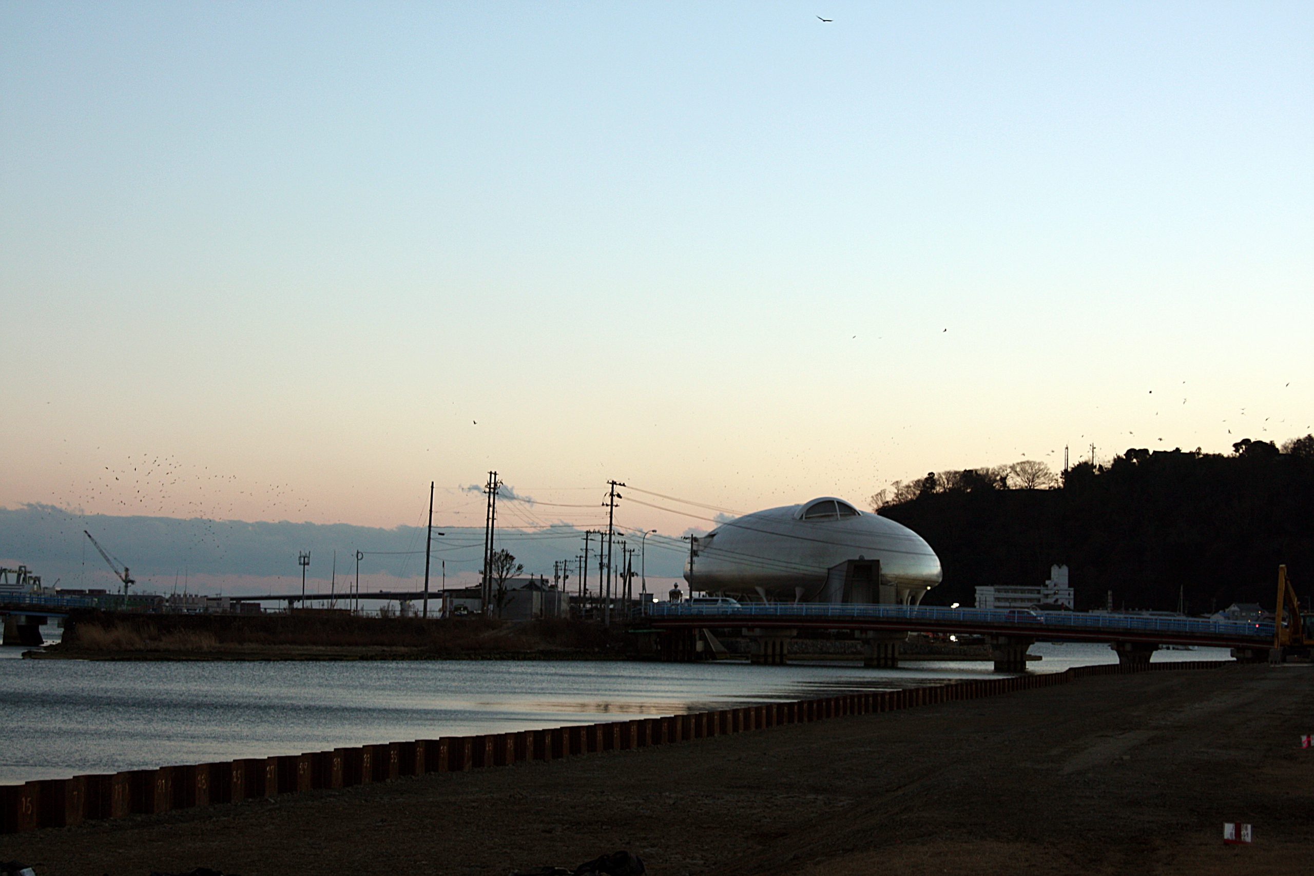 石ノ森萬画館は北上川の河口付近に位置する。川沿いを歩いていると、広大な更地が目に入る。所々で建設工事が行われていたが、どことなく寂しさを覚えた。この寂しさを感じさせたのは更地のせいではなく、あたりに人影がなかったからだろう。