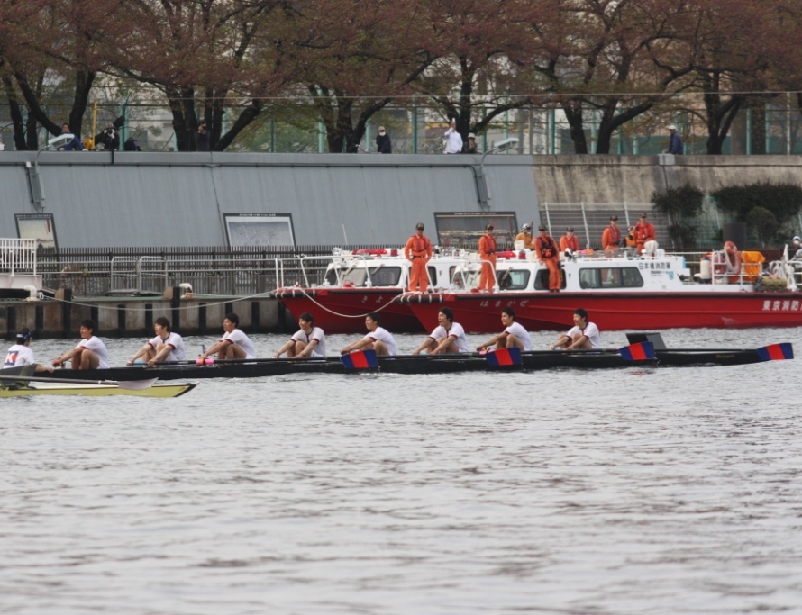 悪いコンディションの中、コースの関係で10㍍先行してのスタートとなった慶大は序盤、早大に10㍍差を一気に詰められるも徐々にリードを広げレースを支配する。中盤もリードを保ち、中間地点の駒形橋付近で2艇身半差をつけ早大を突き離しにかかる。