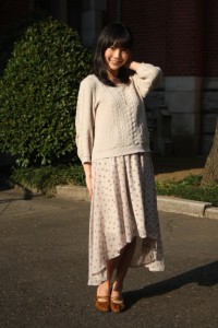 新学期特有の緊張感もとけ、やる気に満ち溢れているこの季節。そんな中を颯爽と歩き、愛くるしい瞳をせわしなく動かすのは、今月のキャンパスアイドル、橋爪佳織さん(法2)だ。