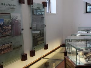 停車場の建物の中には旧新橋停車場鉄道歴史展示室という資料館があり、新橋停車場の遺構から出土した切符や鉄道員の制服のボタンなどが展示されている。また、時期ごとに変わる企画展も催されており、現在は6月25日まで『JRバス』が開催中だ。どちらも無料で見学でき、気軽に立ち寄ることができる。