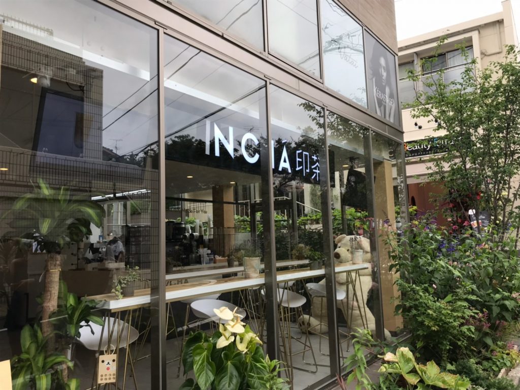 自由が丘駅正面口から徒歩およそ 4 分。私たちが初めに向かったのは、2019 年 6 月 3 日、自由が丘に日本初上陸した「印茶」。中国を中心にアメリカやマレーシアなど世界各国に 200 店舗以上を展開している台湾発祥のティー専門店だ。北欧風デザインの店内には、インスタ映えすること間違いなしの大きなクマのぬいぐるみが置いてあり、買ってその場で飲めるイートインスペースも完備されている。