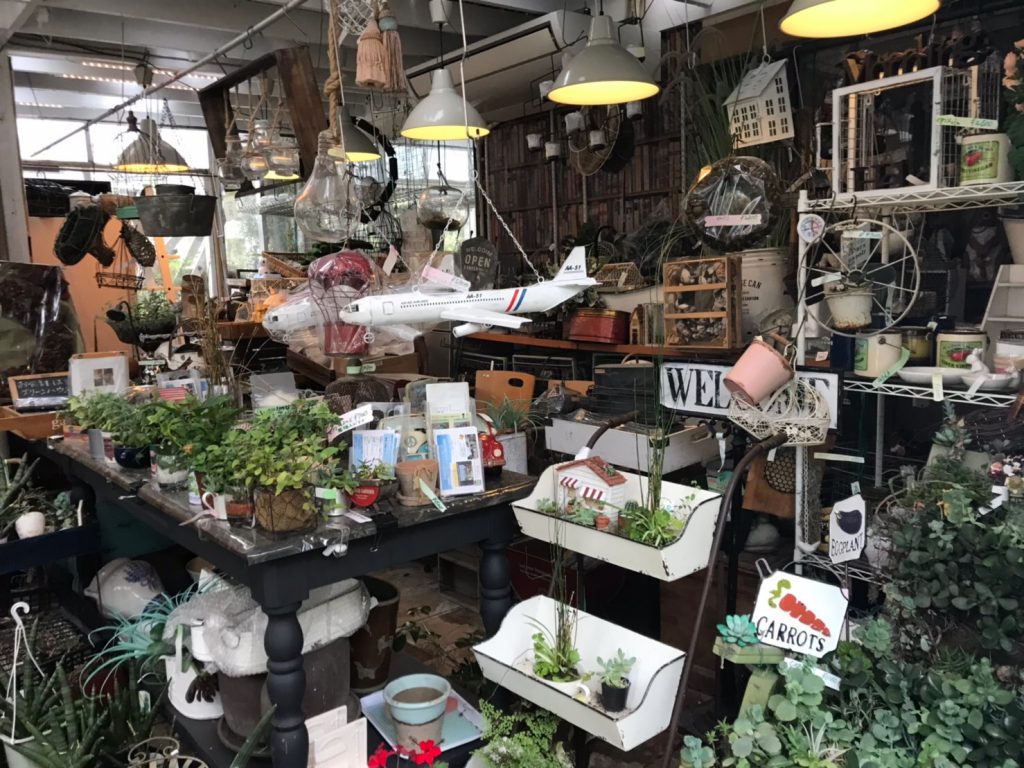 体験時間の目安は 10 分~30 分。夢中になってしまう人だと 2 時間くらいかける人もいるようだ,特にここのイチオシは“小物を活かした園芸”。飛行機や鉄道の模型や椅子,靴などの人工の小物や衣料品と、苔や草花などの自然が一つに融合したアートが、所狭しと並べられている。特に,ブーツの中に草花を植えてしまうという斬新なアイデアから生み出された作品はここでしか見られないものだという。ある程度経験がある人でも新しい体験ができる。このお店は持ち込みが可能で,作品に使いたい小物などを自分で持ってくることができるので,型にとらわれない作品を作ることができるのだ。
