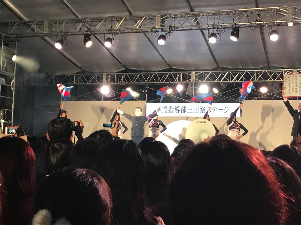 三田祭最終日、最後のメインステージを彩るのは應援指導部のパフォーマンス。