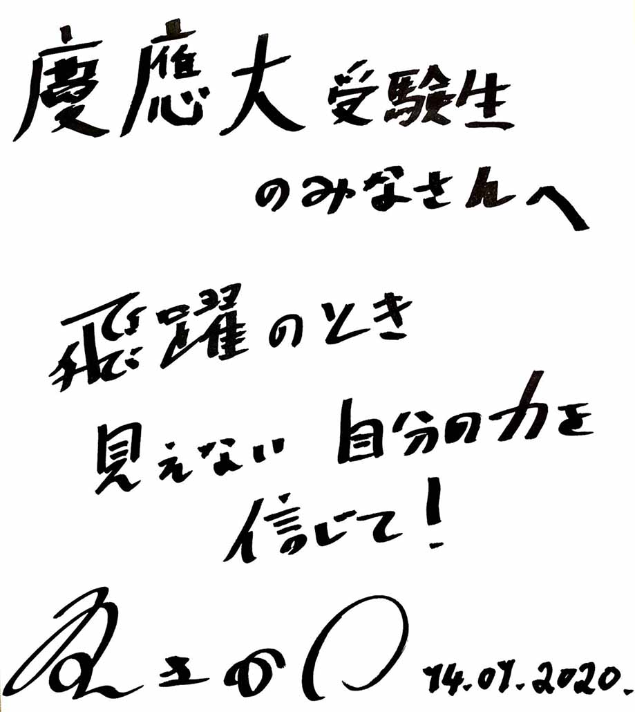 「今まで受験勉強でサナギのように力をためてきたが、入試は蝶の羽化のように『自分からいま羽が生えるのだ』という気持ちで行ってほしい。私もまた羽化したいと思ってますよ(笑)」