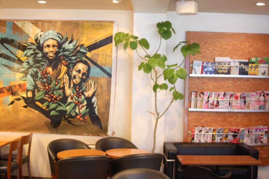 まず伺ったのは、芝公園駅を降りてすぐのULALA Caféさん。ちょうど今年で開店11年目を迎えるこのカフェには、大きなウォールアートがあり、壁には海外の写真も飾られている。店内の様子を眺めているだけでも楽しい。 スタッフの片桐さんは、カフェのスタイルについて「お客様が、くつろいでいただけるカフェでありたい」とほほ笑む。 さまざまな人が思い思いの事をして過ごす、ゆったりとした時間が流れるこのカフェは読書をするのにも、居心地がいい。
